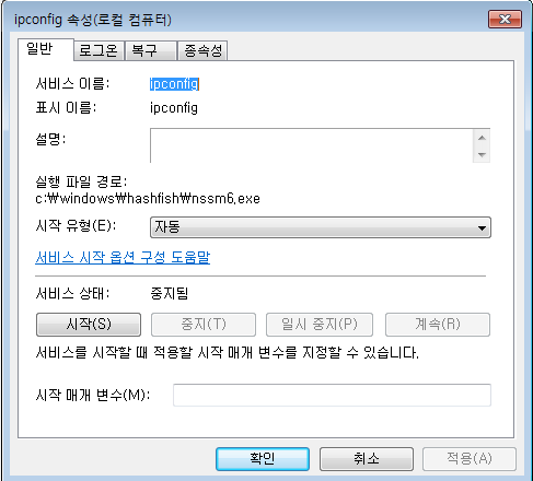 2.bat를 통해 snshost.exe를 ipconfig 명으로 서비스 등록을 합니다.